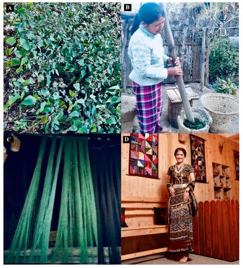 The following supporting information can be downloaded at https://www.mdpi.com/article/10.3390/d14121065/s1: Table S1: Locations and names of communities of collected natural dye based on plants in Chin State of Myanmar; Table S2: Demographic characteristics of informants from nine communities. The R-script and data for the use categories used in this study are mordant, black, blue, brown, green, purple, red, and yellow, and they are available in the text document (Rcode for indices_S3) and excel file (combined_data_S4). Appendix S1. A total of 30 species from 29 genera and 24 families were recorded among the informants