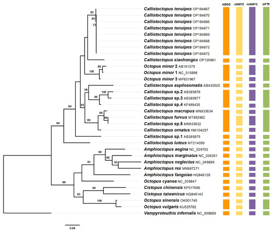 | Callistoctopus aspilosomatis | AB430525 | Miyagi Island, Okinawa, Japan | [32] |