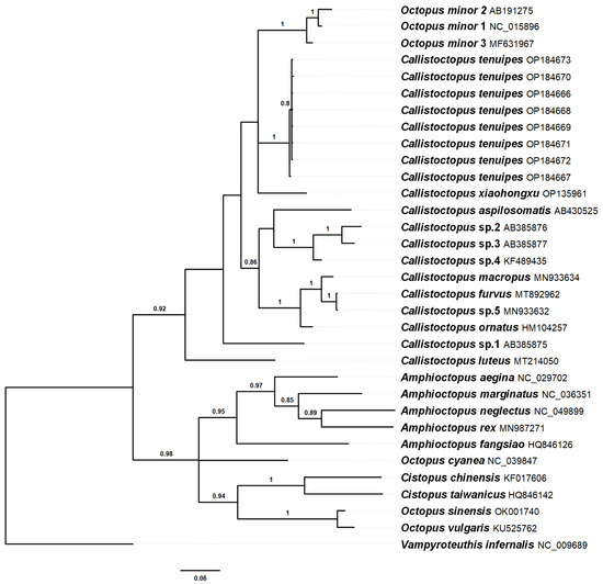 | Callistoctopus xiaohongxu | OP135961 | Zhangzhou, Fujian, China | [5] |