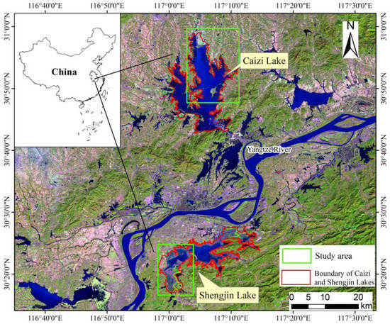 The study sites were chosen in two lakes connected to the Yangtze River (Figure 1), in the upper part of Shengjin Lake (30.25°–30.50° N, 116.92°–117.25° E) and the Baitu Lake part of Caizi Lakes (30.75°–30.97° N, 117.00°–117.15° E) where wintering Hooded Cranes mainly foraged. The number of Hooded Cranes observed in the survey areas accounted for the majority of the wintering population. The lake habitats in the study areas are highly heterogeneous, and these diverse landscapes provide suitable habitats for the cranes [38]. In recent years, the number of submerged plants in the lakes of Yangtze River floodplain has declined sharply, and cranes have had to change their food sources, forcing them to move from natural habitats to artificial habitats (paddy fields) for daily food security [19]. Paddy fields play an important role as alternative habitats for the cranes. According to the natural climate, and the migratory rhythm of the cranes, we defined November–December as the early wintering period, January–February as the middle wintering period, and March as the late wintering period.