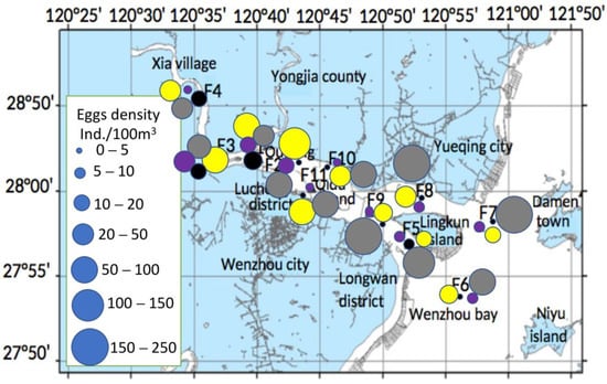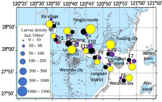 - Zhou, M.; Lin, Y.; Yang, S.; Cao, W.; Zheng, L. Ecological distribution of ichthyoplankton around Oujiang estuary in spring and autumn in 2015. J. Mar. Sci. 2015, 30, 94–105. [Google Scholar]