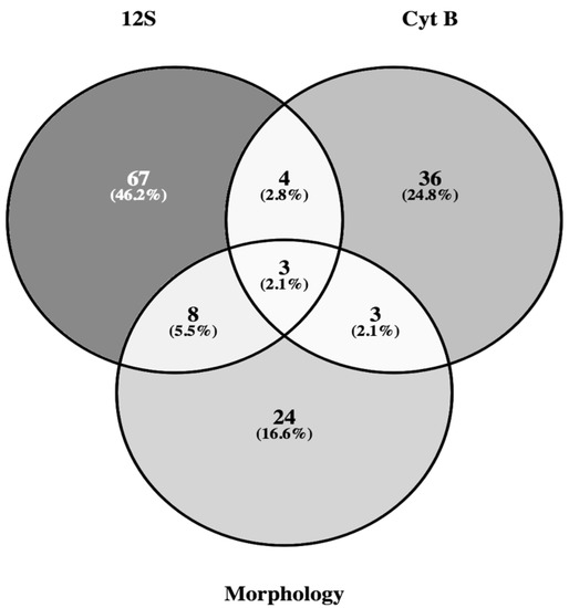 - Deagle, B.E.; Jarman, S.N.; Coissac, E.; Pompanon, F.; Taberlet, P. DNA metabarcoding and the cytochrome c oxidase subunit I marker: Not a perfect match. Biol. Lett. 2014, 10, 20140562. [Google Scholar] [CrossRef]