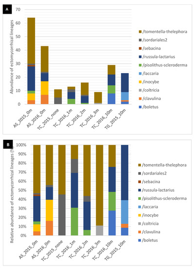 ITS sequences of ectomycorrhizal root tips were deposited on DDBJ (http://www.ddbj.nig.ac.jp/, accessed on 5 September 2017).