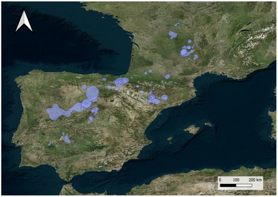 Europe holds at least 90% of the global red kite population, with 24,000–31,900 pairs breeding in 17 countries and a winter population size of 38,100–42,200 individuals [22]. The wintering population trend is considered to be decreasing on both the short and long terms [23]. Currently, the species is listed as “Least Concern” by the International Union for Conservation of Nature and Natural Resources [24] but “Endangered” according to the Spanish List of Threatened Species. The red kite has a great variability in its spatial strategies. Most red kites in north-eastern Europe are intracontinental migrants and they spend the wintering season mainly in southern France, Spain and Portugal [25,26], but there is also a growing number of sedentary individuals in Central Europe [27], and a small number of red kites wintering in northern Africa (Eurokite, unpublished data). In addition, there are non-migratory breeding populations in the wintering areas of birds coming from the north, as is the case in Spain. Birds usually start the autumn migration to their wintering areas in southern Europe between August and November and return to their breeding areas between February and April [26,28]. According to the last census, Spain is the main winter destination for the species, with an estimated wintering population of 50,297 individuals [17]. However, the number of populations wintering outside of Spain are generally increasing [24]. Therefore, the red kite is probably changing its distribution in Europe. In some countries, breeding and wintering populations are increasing and becoming progressively more sedentary, but elsewhere, especially at the species’ southern distribution limits, including Spain, which currently supports the main wintering populations, numbers are decreasing. Global warming could displace red kites to a more northern distribution, as has been happening in the last years with several species [29,30,31]. For this reason, the study of the variability in the wintering strategies of the red kites is mandatory in understanding the behaviour of the species, and its conservation needs elaborating accurate management plans.