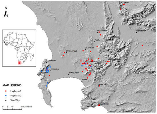 3.3. Geographic Distribution of Haplotypes in the Western Cape