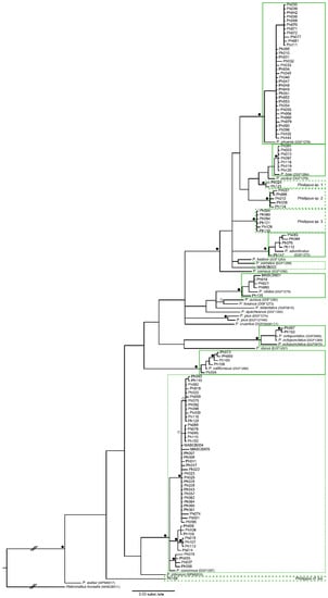 Three clades in this study’s COI Bayesian phylogeny did not include any of the reference species, perhaps because they are species for which reference sequences were not available, or perhaps they are, to date, undescribed species. For two of the unidentified morphospecies, adult specimens were not available; however, the BGA placed them with P. boei. A third species probably belongs to the insignarius group following Edwards’ [7] classification. However, to accurately determine whether these individuals belong to undescribed species, further sampling and a full taxonomic work will be necessary.