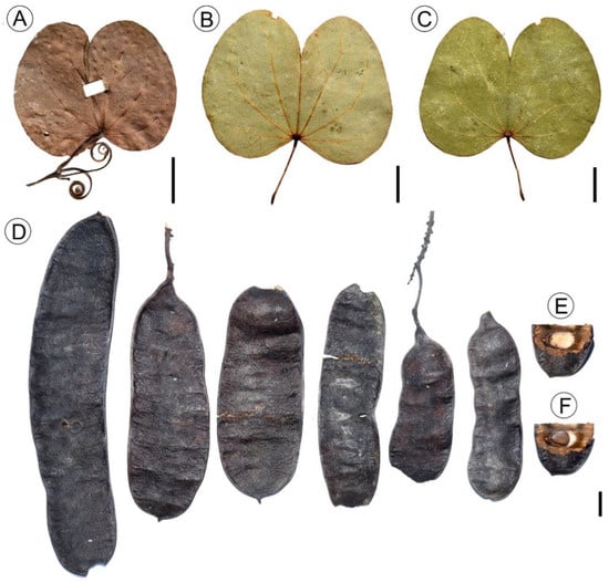Fossils of Bauhinia have been documented in various forms of wood, leaf, and twig with attached fruit [9,10,11,12]. The earliest reliable fossils are leaves from the early Oligocene of China [11,13]. Later fossils of the genus are documented from the late Oligocene and Middle Miocene of China, the Oligocene of Mexico, and the early Miocene and middle Miocene–middle Pleistocene of India, the Pliocene of Uganda, and the Miocene of Ecuador [9,10,12,14,15,16,17,18].