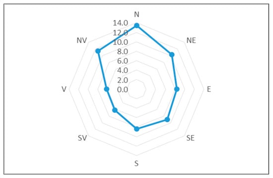 The average value of cardinal orientation for the ratio between the healed width of the damage and the circumference of the damaged tree was identified, together with the standard deviation and the variation coefficient of the obtained value. An ANOVA test was applied in order to test the hypothesis that significant differences exist between the values of the ratio between the healed damage widths and the tree circumference for different damage orientations. The cardinal orientation of the damage was considered the cardinal orientation from the middle of the width of the damage, measured in the horizontal direction. The correlation between the studied relation and the circumference of the damaged tree was analysed with the help of the Pearson correlation coefficients.