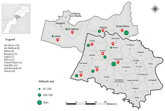 Map of distinct localities surveyed for nematodes in the Southern region of Morocco.