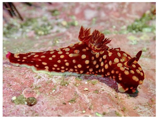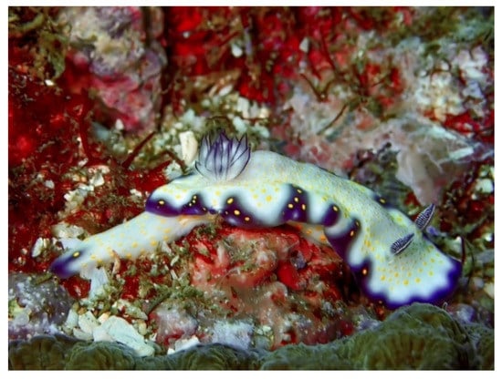 - Sea Slug Forum: Chromodoris rufomaculatus. Available online: http://www.seaslugforum.net/find/chrorufo (accessed on 16 February 2022).