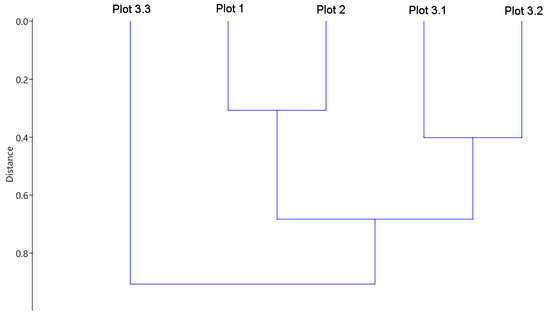 Cluster analysis based on the Jacquard similarity coefficient (CJ) demonstrated the degree of kinship of the helminth compositions of Pelophylax lessonae from different plots (Figure 1). He showed two groups of clades with a certain similarity between them. The first group is the clades Plot 1 and 2, representing floodplain ecosystems, which have the most similar compositions of helminths (CJ = 0.71). The second group with a lesser degree of similarity (CJ = 0.61) is the clades of Plot 3.1 and 3.2 belonging to forest ecosystems. The species diversity of helminths has a maximum similarity within groups and a minimum among groups. On the other hand, the most distant from all was the Plot 3.3 clade, which shows that the forest hydrobiocoenosis has an artificial origin (Figure 1).