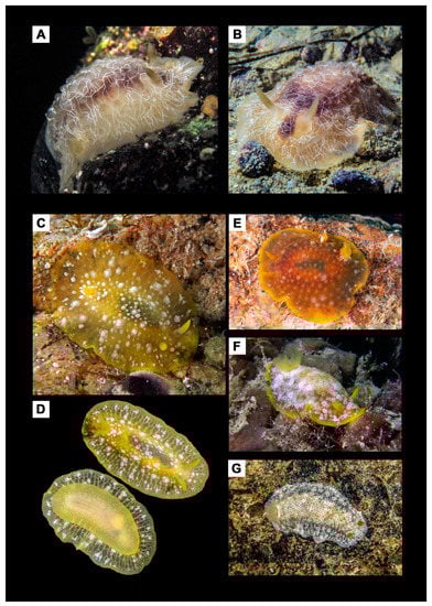 - Sea Slug Forum. Available online: http://seaslugforum.net/showall/doripels (accessed on 30 March 2022).