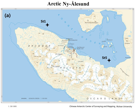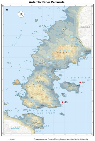 Maps of sampling sites in Arctic Kongsfjorden (a) and Antarctic Maxwell Bay (b) in 2011.