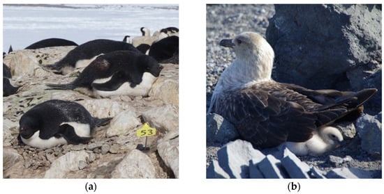- Morandini, V.; Dugger, K.M.; Lescroël, A.; Schmidt, A.E.; Ballard, G. Maintenance of Nest Quality in Adélie Penguins Pygoscelis Adeliae: An Additional Benefit to Life in the Center. Polar Biol. 2021, 44, 1553–1562. [Google Scholar] [CrossRef]