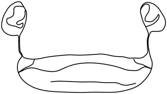 - Rostral appendix: (0) Absent; (1) present. Modified from Aschliman et al. [] (char. 28). The presence of rostral appendices is considered a shared feature between rhinopristisforms and rajiforms []. McEachran et al. [] and Claeson et al. [] also recognized their presence in fossil taxa such as †“Rhinobatos”maronita, †“R.” latus, †Britobatos and †Rhombopterygia. The coding from previous works [,] for †Spathobatis was changed to “present” after new observations were made on several fossil specimens (e.g., BMNH P. 12067, BSPG 1952-I-82, BSPG -AS-I-505) (EV, pers. observ.). Although rostral appendices might be present in Diplobatis, Benthobatis, Narcine, Discopyge and †Titanonarke [,,,], their homology with rostral appendices of skates and guitarfishes is unclear, and we therefore coded the state as (0) in these taxa. Considering that the subtriangular rostral extremity reported and observed in Urolophus, Gymnura, Urotrygon, Plesiobatis and Potamotrygon is in connection with the anterior medial outgrowth of the trabecula [] (one of the embryological cartilages that forming the rostral cartilages along with the lamina orbitonasalis), it is very likely that these vestigial cartilages correspond to the rostral node and rostral shaft (sensu McEachran and Compagno []) and that the rostral appendices are involved, considering the presence of small posterior projections parallel to the rostral shaft. However, considering the lack of agreement about the presence of this structure in the literature [,,] we coded this character as unknown for these taxa (?).