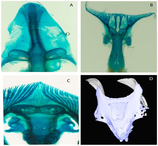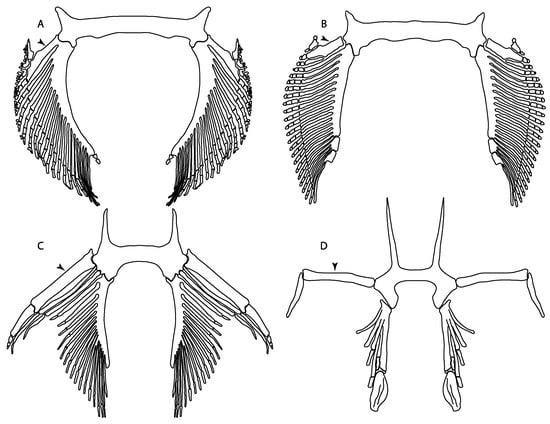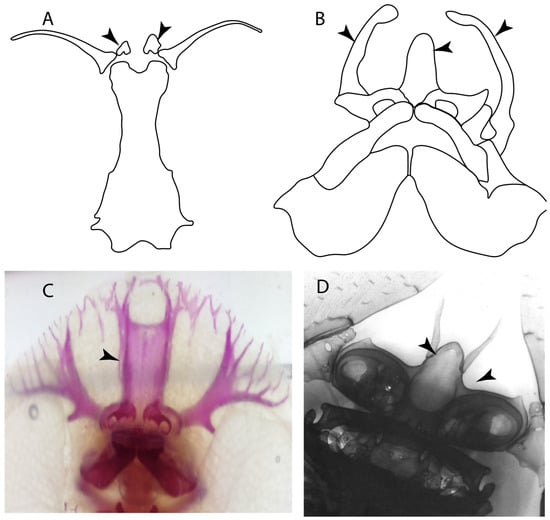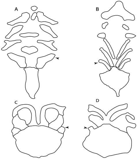 - De Carvalho, M.; Bockmann, F.A.; de Carvalho, M.R. Homology of the fifth epibranchial and accessory elements of the ceratobranchials among Gnathostomes: Insights from the development of ostariophysans. PLoS ONE 2013, 8, e62389. [Google Scholar] [CrossRef] [PubMed] [Green Version]