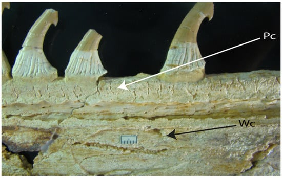 - Smith, M.M.; Riley, A.; Fraser, G.J.; Underwood, C.J.; Welten, M.; Kriwet, J.; Pfaff, C.; Johanson, Z. Early development of rostrum saw-teeth in a fossil ray tests classical theory of the evolution of vertebrate dentitions. Proc. R. Soc. B Biol. Sci. 2015, 282, 20151628. [Google Scholar] [CrossRef] [PubMed] [Green Version]