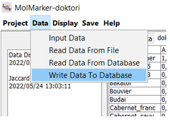 The menu structure of MolMarker is provided in Table 1. After installation, new projects can be created or input files can be read by the software. MolMarker employs semicolon-delimited files as input, described as ‘molecular’, for isozymes or other types of biochemical markers, or ‘genetic’ type input files, coded in binary (presence/absence) format. Input files are further described in the manual and example files are provided in the software package.