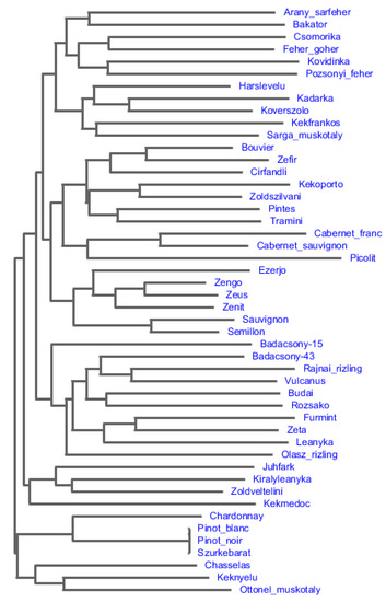 - Bowers, J.E.; Meredith, C.P. The parentage of a classic wine grape, Cabernet Sauvignon. Nat. Genet. 1997, 16, pp. 84–87.