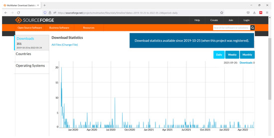 Using the intuitive graphical user interface, basic marker statistics for genetic studies can be obtained with MolMarker. The software is open source and can be downloaded for free [33]. The software has been downloaded 351 times since its registration (Figure 7).