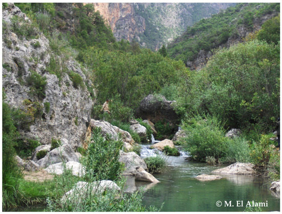 - El Alami, M. Étude Hydrobiologique d'un Réseau Hydrographique Nord-Rifain, l'Oued Laou: Typologie, Ecologie et Biogéographie des Ephéméroptères. Ph.D. Thesis, Université Mohamed V, Rabat, Morocco, 1989; p. 187. [Google Scholar]
