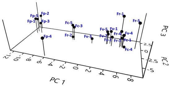 3D PCA analysis of the studied Festuca specimens.