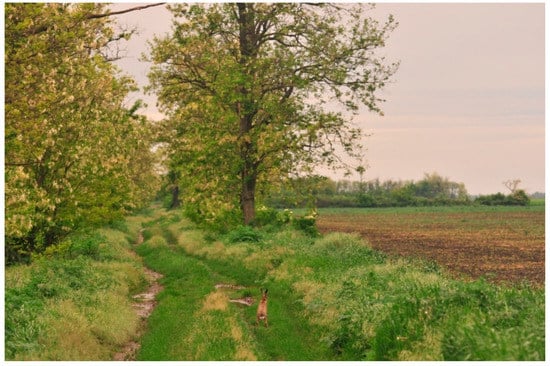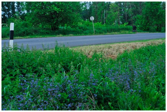 Csathó [] categorized verges based on their bordering objects and their origin. We can identify three types of verges: I. interspaced verges, II. border verges and III. periodic verges. Interspaced verges are between two objects (e.g., road-railway, canal-dirt road). Border verges are situated next to roads, railways, canals so on and so forth. Periodic verges are grass verges that are in direct contact with agricultural fields from both sides. He shows the impact on the quality of the grassland that is affected by activities in contact with the verges. He describes that the vegetation of the border verges has usually better condition than the vegetation of the periodic verges, which is damaged by leaching fertilizer. Furthermore, he categorizes the grasslands into two groups based on their origin. According to his opinion, it could be significant for their conservation value. Primary verges preserve traces of original loess vegetation. On the other hand, secondary verges have been left by ploughing (e.g., flood protection embankments). Weeds and generalist species are dominant in these verges [].