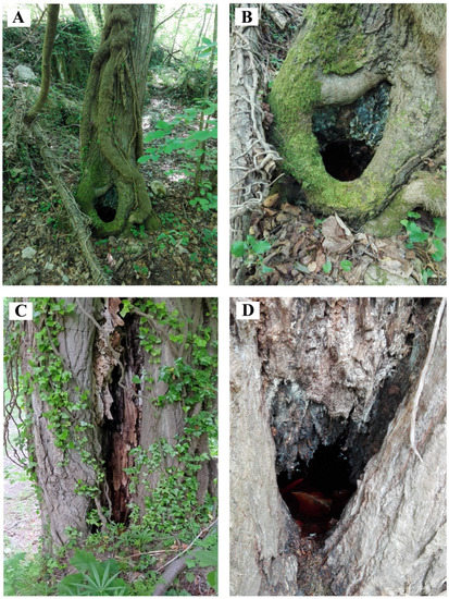 - Röhnert, U. Wassererfüllte baumhöhlen und ihre besiedlung. ein beitrag zur Fauna dendrolimnetica. Arch. Hydrobiol. 1950, 44, 472–516. [Google Scholar]