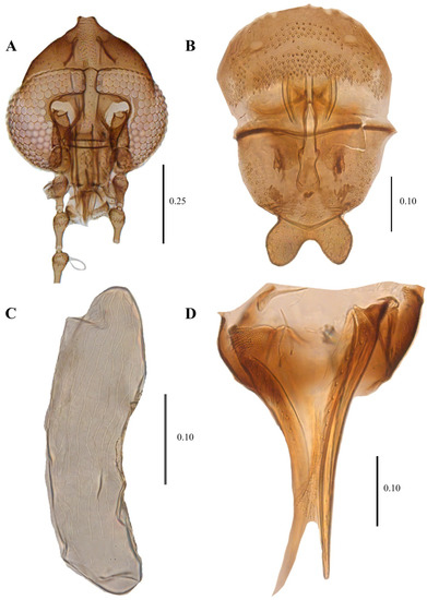 - Cumming, J.M.; Wood, D.M. 3. Adult morphology and terminology. In Manual of Afrotropical Diptera. Introductory Chapters and Keys to Diptera Families; Kirk-Spriggs, A.H., Sinclair, B.J., Eds.; SANBI Graphics & Editing: Pretoria, South Africa, 2017; Volume 1, pp. 89–133. [Google Scholar]