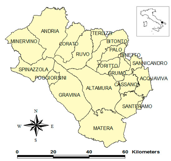 Alta Murgia (Apulia and Basilicata regions, Southern Italy). The municipalities involved in this study are shown.