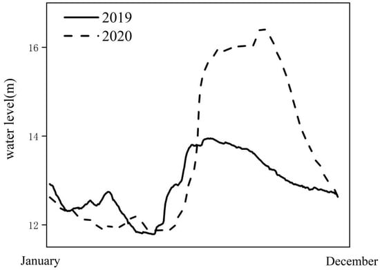 We sampled 23 sites in four lakes during the period of January 2020 to October 2021. The area experienced extreme rainfall in the summer of June 2020. The water level of HYH reached a new maximum of 16.42 m (Figure 2, data from www.ncc-cma.net. Date of visit is 2 December 2021). The sampling sites are shown in Figure 1.