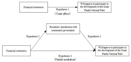 Taking the Giant Panda National Park as an example, this paper uses factor analysis to measure residents’ financial awareness and mediating effect models to investigate the influence paths of community governance, financial awareness, and residents’ willingness to participate in the construction and development of national parks. Finally, it suggests potential solutions for national park development and biodiversity conservation. The results indicated that financial awareness and community governance levels had a positive effect on residents’ willingness to participate, and satisfaction with community governance played a significant partially mediating role in their financial awareness, which in turn influenced their level of willingness.