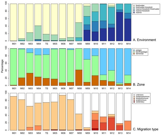 - Whitfield, A.K. Why are there so few freshwater fish species in most estuaries? J. Fish Biol. 2015, 86, 1227–1250. [Google Scholar] [CrossRef]