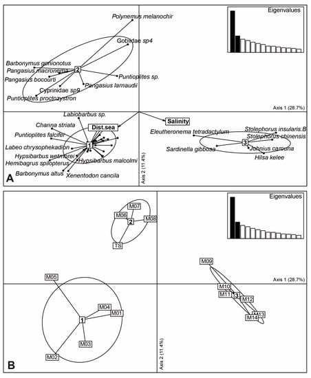 - Kang, B.; Huang, X. Mekong fishes: Biogeography, migration, resources, threats, and conservation. Rev. Fish. Sci. Aquac. 2022, 30, 170–194. [Google Scholar] [CrossRef]