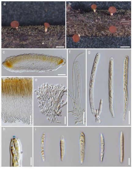 - Liu, X.-X.; Zhuang, W.-Y.; Zeng, Z.-Q.; Zhao, P. Newly discovered sclerotiniaceous fungi from China. Nova Hedwig. 2016, 102, 347–357. [Google Scholar] [CrossRef]