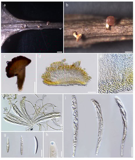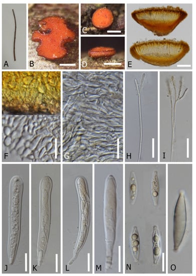 - Ekanayaka, A.H.; Hyde, K.D.; Gentekaki, E.; McKenzie, E.H.C.; Zhao, Q.; Bulgakov, T.S.; Camporesi, E. Preliminary classification of Leotiomycetes. Mycosphere 2019, 10, 310–489. [Google Scholar] [CrossRef]