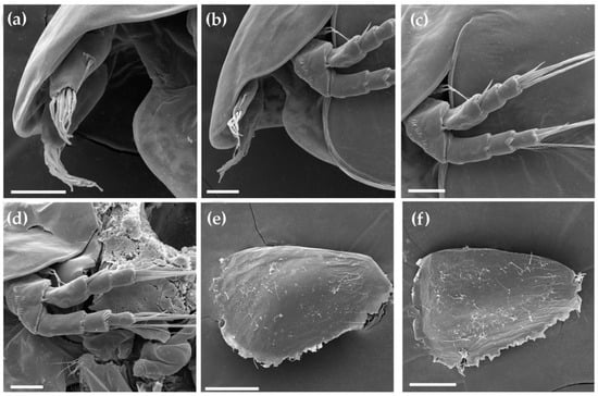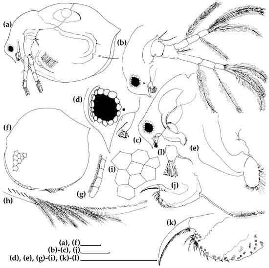 - Kotov, A.A. Morphology and Phylogeny of the Anomopoda (Crustacea: Cladocera); KMK Scientific Press Ltd.: Moscow, Russia, 2013; ISBN 9785873179237. [Google Scholar]