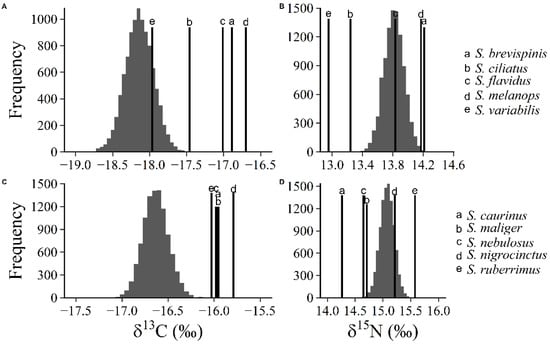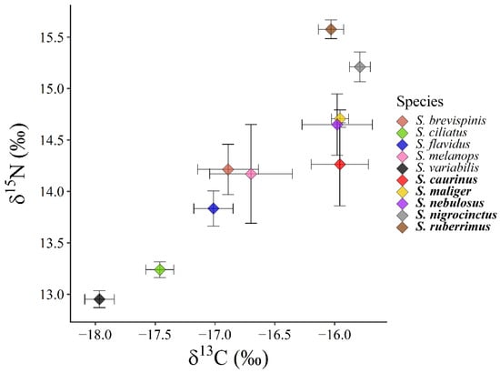- Boecklen, W.J.; Yarnes, C.T.; Cook, B.A.; James, A.C. On the Use of Stable Isotopes in Trophic Ecology. Annu. Rev. Ecol. Evol. Syst. 2011, 42, 411–440. [Google Scholar] [CrossRef] [Green Version]