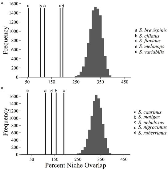 - Costa-Pereira, R.; Araújo, M.S.; Souza, F.L.; Ingram, T. Competition and Resource Breadth Shape Niche Variation and Overlap in Multiple Trophic Dimensions. Proc. R. Soc. B Biol. Sci. 2019, 286, 20190369. [Google Scholar] [CrossRef] [Green Version]