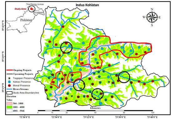 The people of the region experience seasonal migration (summer and winter) with their livestock [48]. Adjoins Azad Kashmir from the east, district Swat in the west, Diamer (Gilgit Baltistan) in the north, and neighbor from the south with Battagram and Shangla [27]. The main major infrastructure development projects in the study area include the Diamer Bhasha and Dassu dams, and the Kayal and Dubair Khur hydropower projects, all of which severely damaged the habitat of the concerned pheasant species. Six valleys were selected: Palas, Jalkot, and Harban from the Himalayas, and Dubair, Kayal, and Palas valleys from the Hindukush range.
