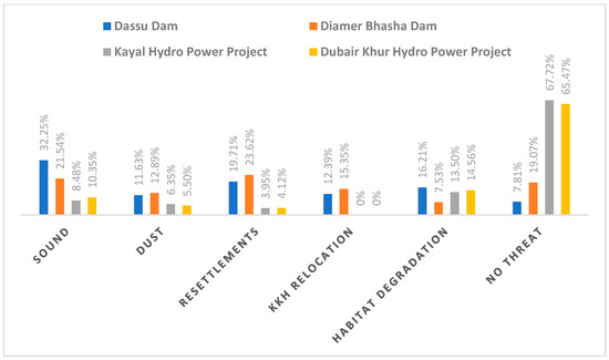 Different newly emerging threats imposed by major infrastructure development projects in the study area.