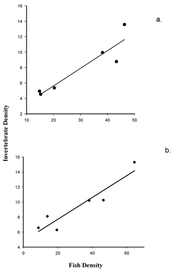 3.3. The Relationship between Fish Density and Macroinvertebrate Emergence at Dry Rocks and Newfound Harbor Reefs