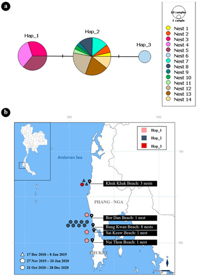 Chicago/Turabian StyleWongfu, Chutima, Wareerat Prasitwiset, Anocha Poommouang, Kittisak Buddhachat, Janine L. Brown, Siriwadee Chomdej, Jatupol Kampuansai, Patcharaporn Kaewmong, Kongkiat Kittiwattanawong, and Korakot Nganvongpanit. 2022. "Genetic Diversity in Leatherback Turtles (Dermochelys coriacea) along the Andaman Sea of Thailand" Diversity 14, no. 9: 764. https://doi.org/10.3390/d14090764