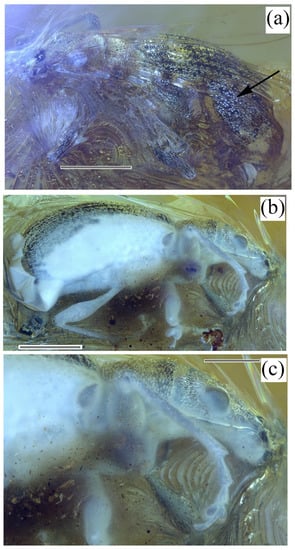 - Perkovsky, E.E.; Rasnitsyn, A.P.; Vlaskin, A.P.; Rasnitsyn, S.P. Contribution to the study of the structure of amber forest communities based on analysis of syninclusions in the Rovno amber (late Eocene of Ukraine). Paleontol. J. 2012, 46, 293–301. [Google Scholar] [CrossRef]
