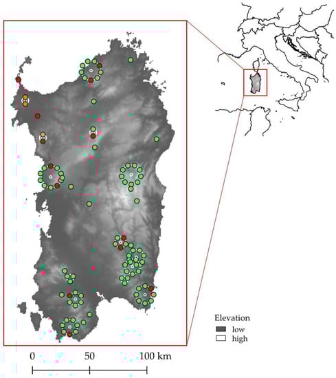 - Canu, S.; Rosati, L.; Fiori, M.; Motroni, A.; Filigheddu, R.; Farris, E. Bioclimate Map of Sardinia (Italy). J. Maps 2015, 11, 711–718. [Google Scholar] [CrossRef]
