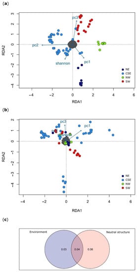 - Frichot, E.; François, O. LEA: An R Package for Landscape and Ecological Association Studies. Methods Ecol. Evol. 2015, 6, 925–929. [Google Scholar] [CrossRef]