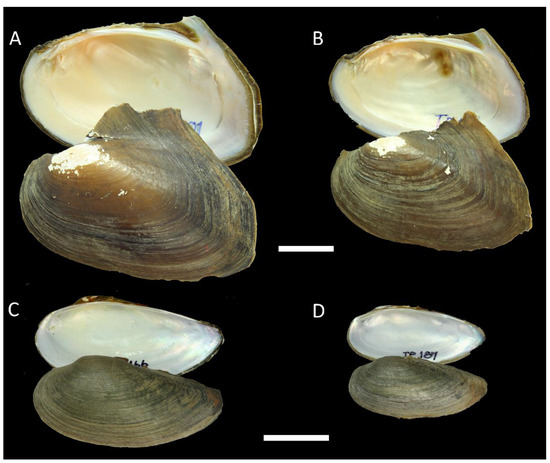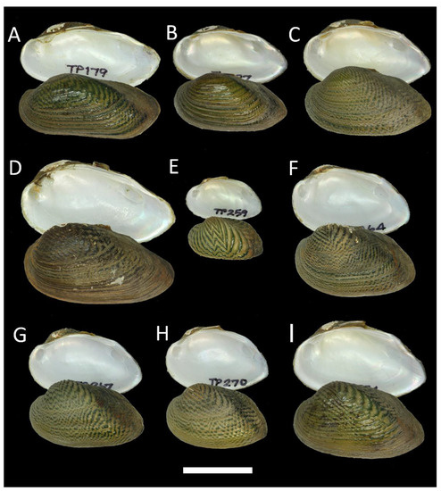 - Jeratthitikul, E.; Sucharit, C.; Prasankok, P. Molecular phylogeny of the Indochinese freshwater mussel genus Scabies Haas, 1911 (Bivalvia: Unionidae). Trop. Nat. Hist. 2019, 19, 21–36. Available online: https://li01.tci-thaijo.org/index.php/tnh/article/view/181195 (accessed on 21 July 2022).