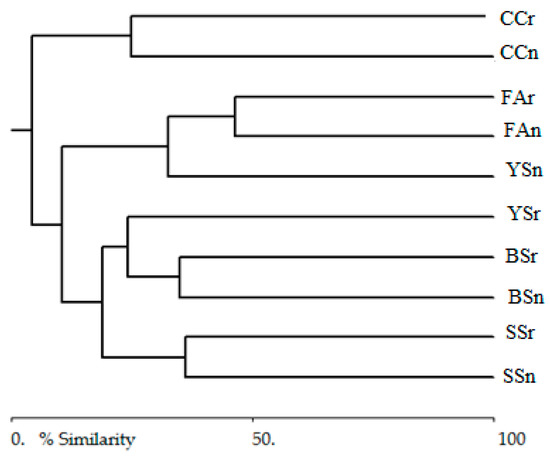 The dendrogram constructed with the Jaccard index showed that caddisfly assemblages were particular for each altitude (Figure 2). Cascadas de Comaltepec (CCll, CCn)—the site located at the highest altitude—was separated from the rest of the streams, which were clustered in two groups. On the one hand, samples of FA and YS were separated; on the other, samples of BS and YSr were separated, and, finally, the samples of SS, located at the lower part of the gradient. These results reveal that the composition of caddisfly assemblages is unique to each stream and season of the year, although the similarity analysis (ANOSIM) showed no significant differences between groups (R = 0.90, p > 0.05).