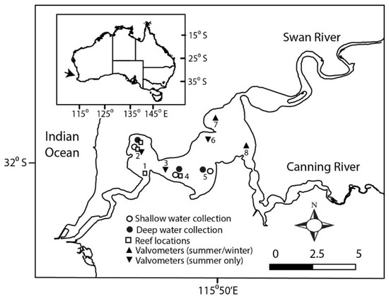 - Baker, J.D.; Cosgrove, J.J. Swan Canning Catchment Data Report January–December 2019; Department of Biodiversity, Conservation and Attractions: Perth, Australia, 2021. [Google Scholar]