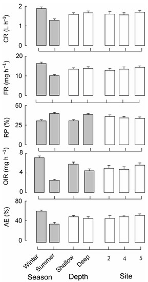3.2. Mussel Feeding Parameters